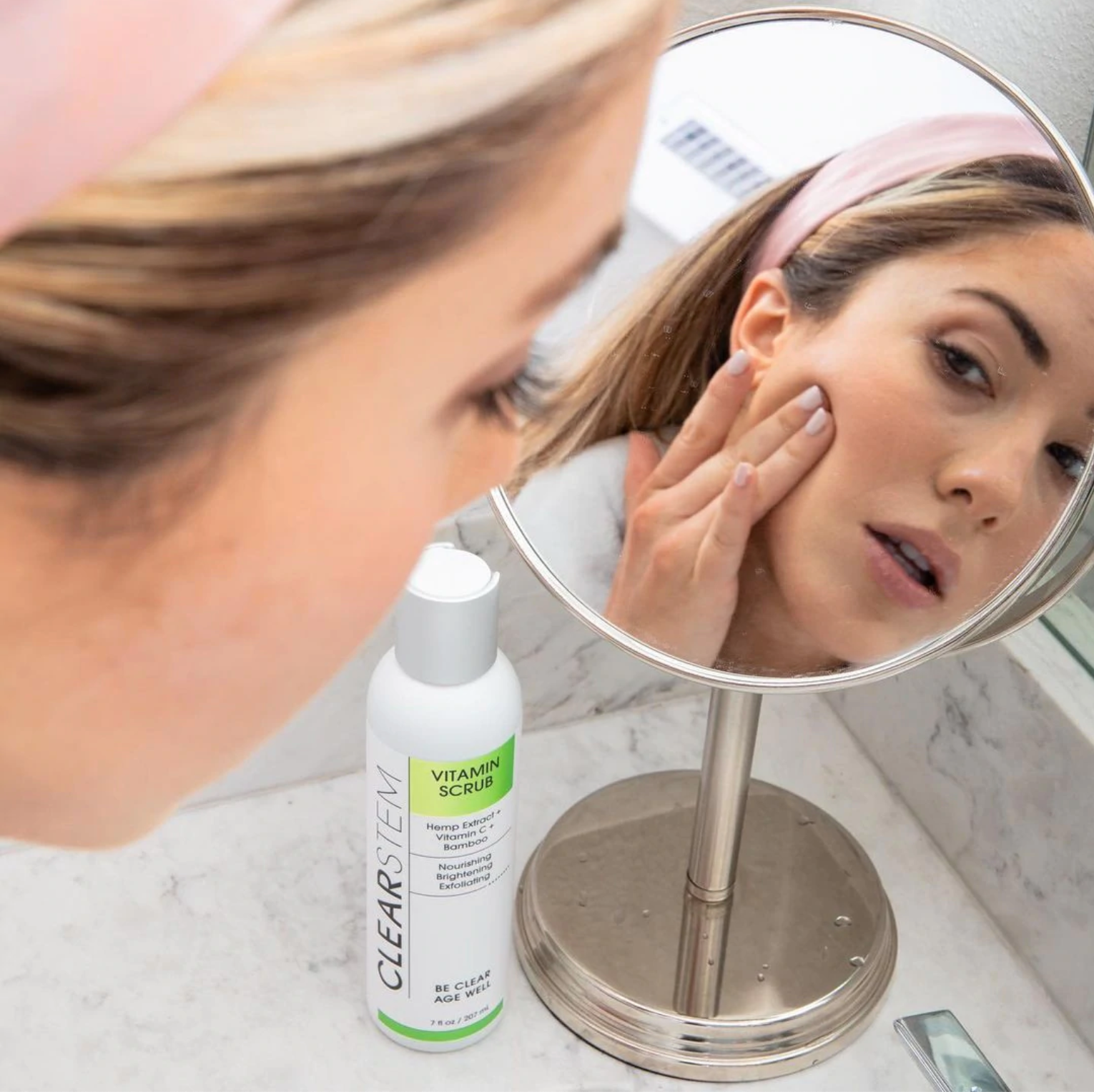 VITAMINSCRUB is a Scrub Cleanser Containing Vitamin C and Green Tea. It Gently Polishes Away Dead Skin Cells, Helping to Unclog Pores, Stimulate Collagen, and Brighten the Skin.