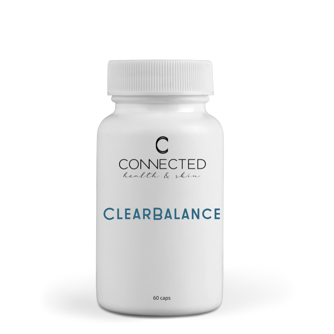Connected Clear Balance is an advanced supplement designed to tackle acne at its root by addressing key factors such as excess oil production, digestion, detoxification, stress, PMS, and hormonal imbalances. Created with the expert guidance of our Naturopathic Doctors at Connected Health & Skin, this formula builds upon the success they saw with ClearStem MindBodySkin with the addition of Zinc Picolinate, a higher concentration of Vitamin A, and the removal of B12 to better support clear and balanced skin.