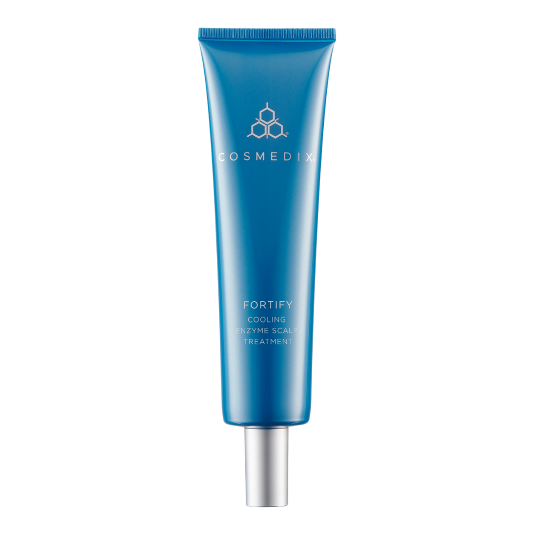Say hello to a healthier-looking scalp and hair! In the age of second- and third-day hair, it's easy to see why the buildup of natural oils and styling products can cause the scalp (an often overlooked area) to be dry. Fortify Cooling Enzyme Scalp Treatment cleanses, clarifies and helps relieve a dry, itchy scalp, think of it as a cleansing mask for your scalp and hair! Formulated with nourishing enzymes and a powerful blend of good-for-your hair and scalp ingredients, this invigorating pre-cleanse scalp treatment—the first scalp treatment to join the COSMEDIX collection—removes buildup and helps restore softness and shine to dry, damaged hair, while aiding in protection from environmental stressors. A supercharged 2-in-1 scalp and hair cleanse, this at-home treatment is perfect for all skin types.