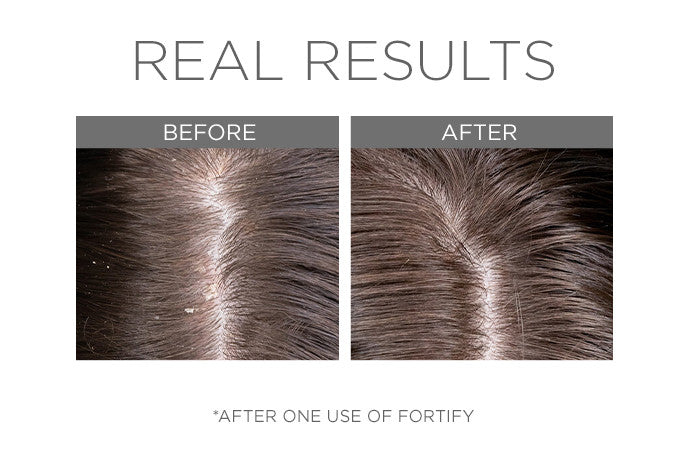 Fortify is a pre-cleanse Cooling Enzyme Scalp Treatment infused with invigorating skincare ingredients that gently exfoliate a dry scalp, remove buildup and help restore softness and shine to dry, damaged hair.