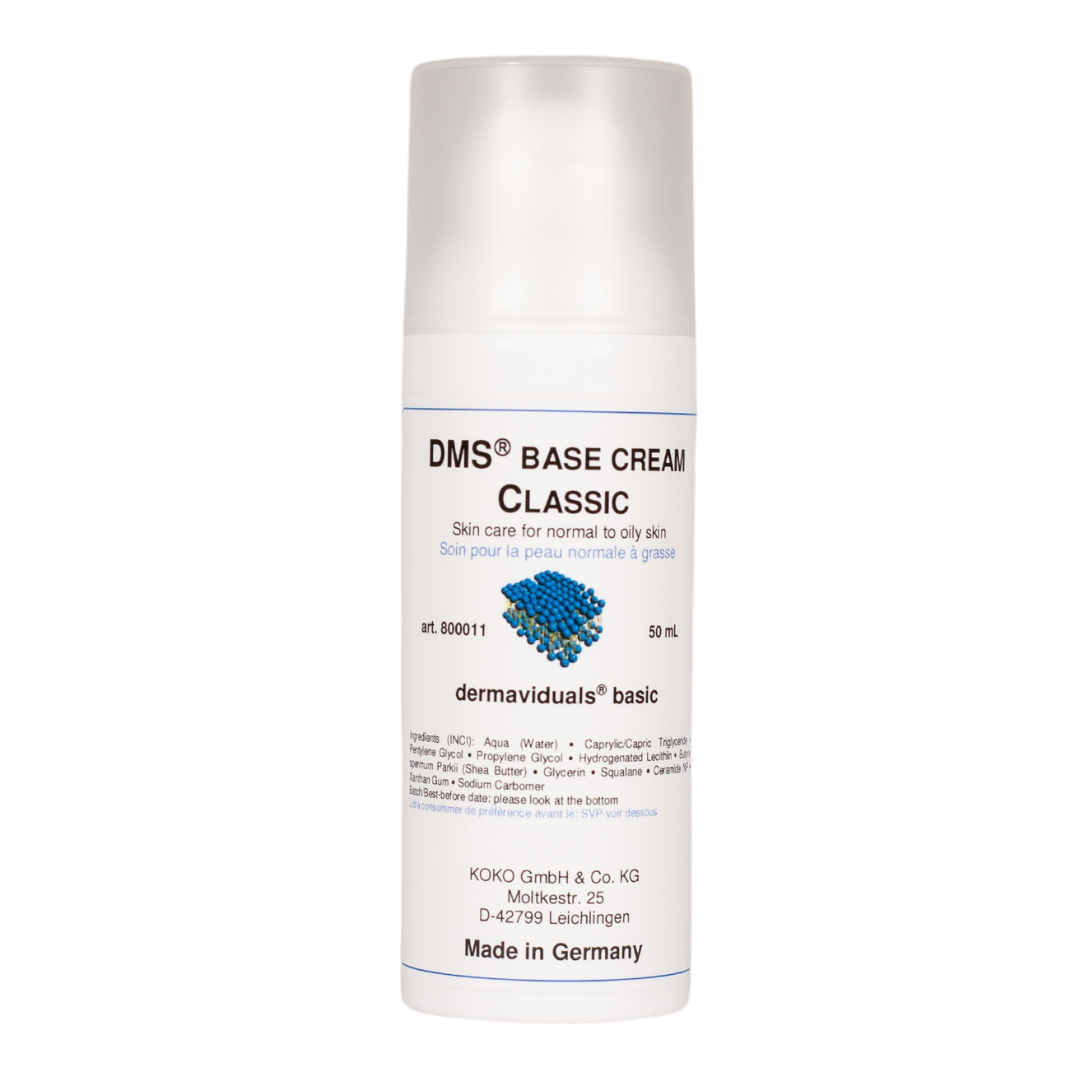 The Classic DMS Base Cream is ideal for those with normal and oily skin. It contains high quality skin caring substances (phosphatidylcholine, shea butter, ceramides, squalane, natural moisturizers), without emulsifiers. The unique liposomal delivery system of these ingredients allows the skin to be hydrated without clogging pores or contributing to sensitivity.