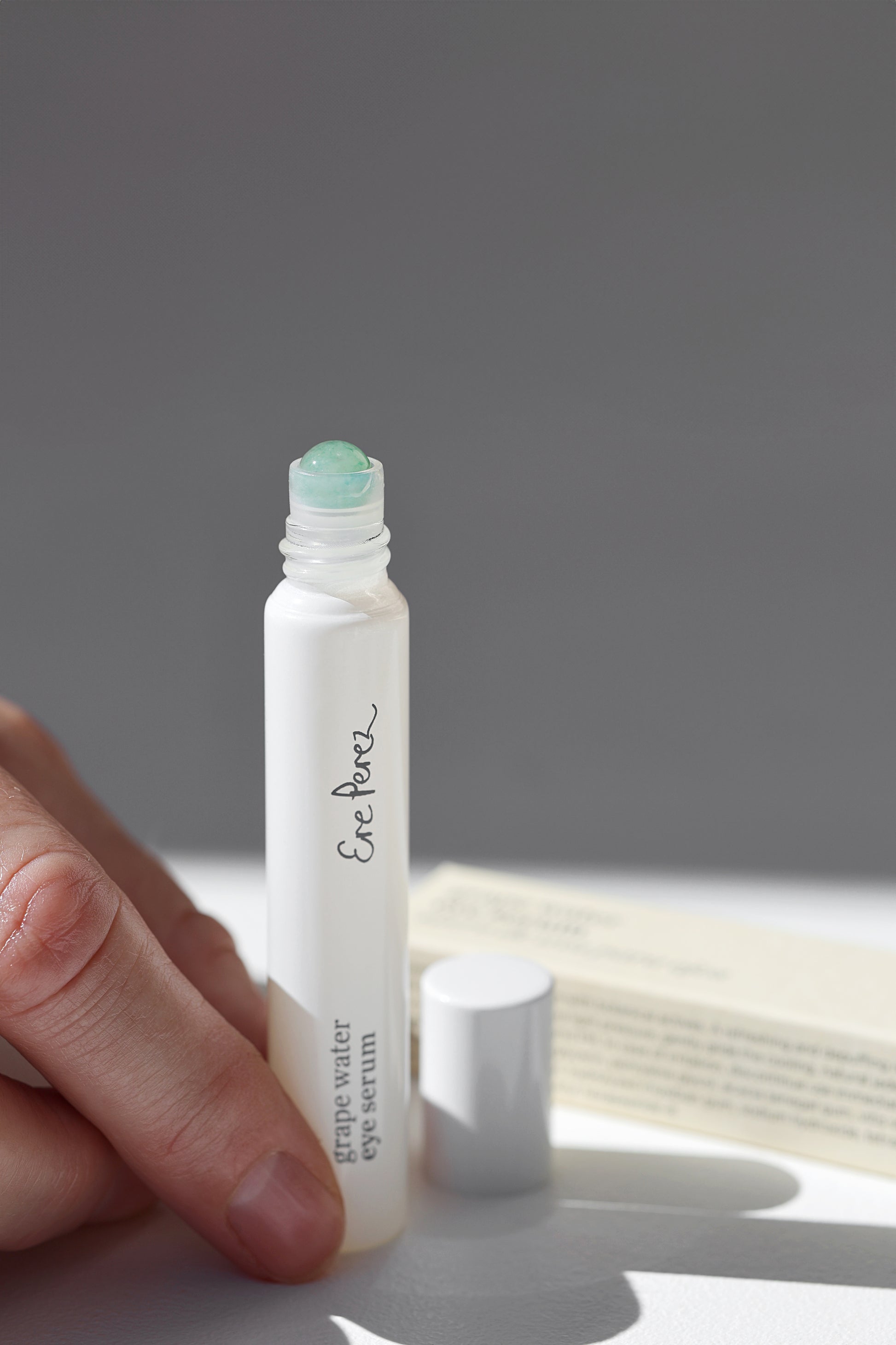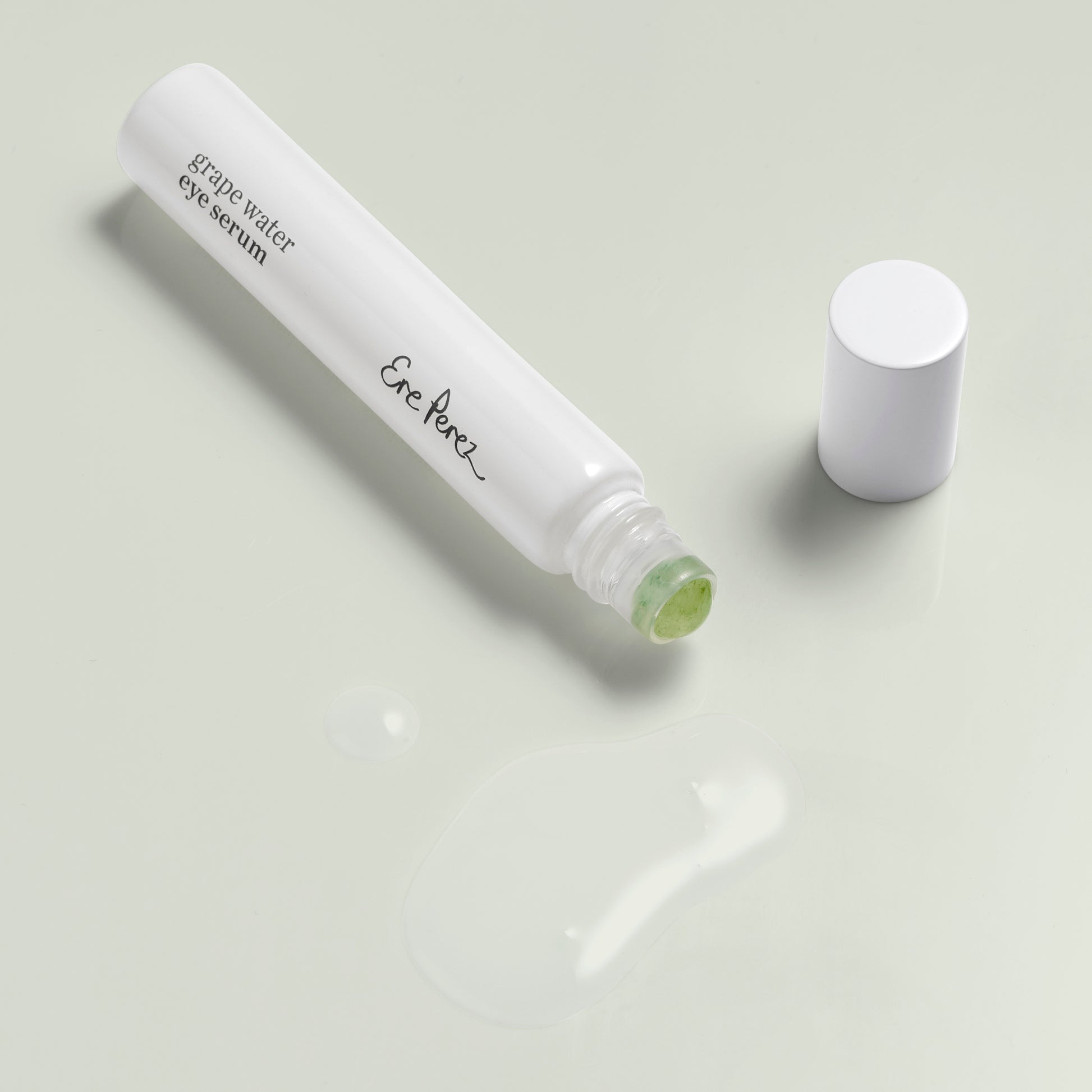 Transform tired eyes with Grape Water Eye Serum – a peptide-infused formula that visibly brightens, reduces puffiness and alleviate signs of fatigue. This refreshing under-eye serum targets the delicate under-eye area, leaving it firmer, smoother and more awake. Powered by peptides to support collagen production and diminish fine lines, this lightweight serum helps revitalise tired eyes. A hydrating blend of grape water, hyaluronic acid and liquorice root works together to plump, sooth and improve skin elasticity. Harnessing the benefits of jade stone, the roller ball instantly depuffs, enhances circulation, as well as improve product absorption. Specially designed for the sensitive under-eye area, this serum is perfect for daily use, morning and night and smooth under makeup.