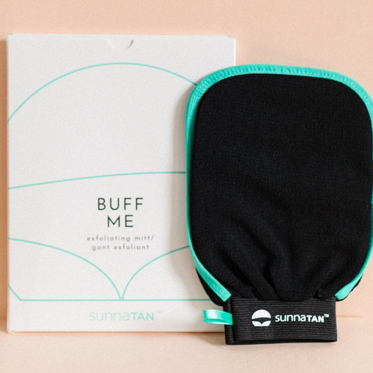 Directions: During the end of your shower, lightly wet your mitt and turn off the shower while you buff away dead skin cells in preparation for your sunless tan. Adjust the pressure based on your comfort level and use a circular motion.