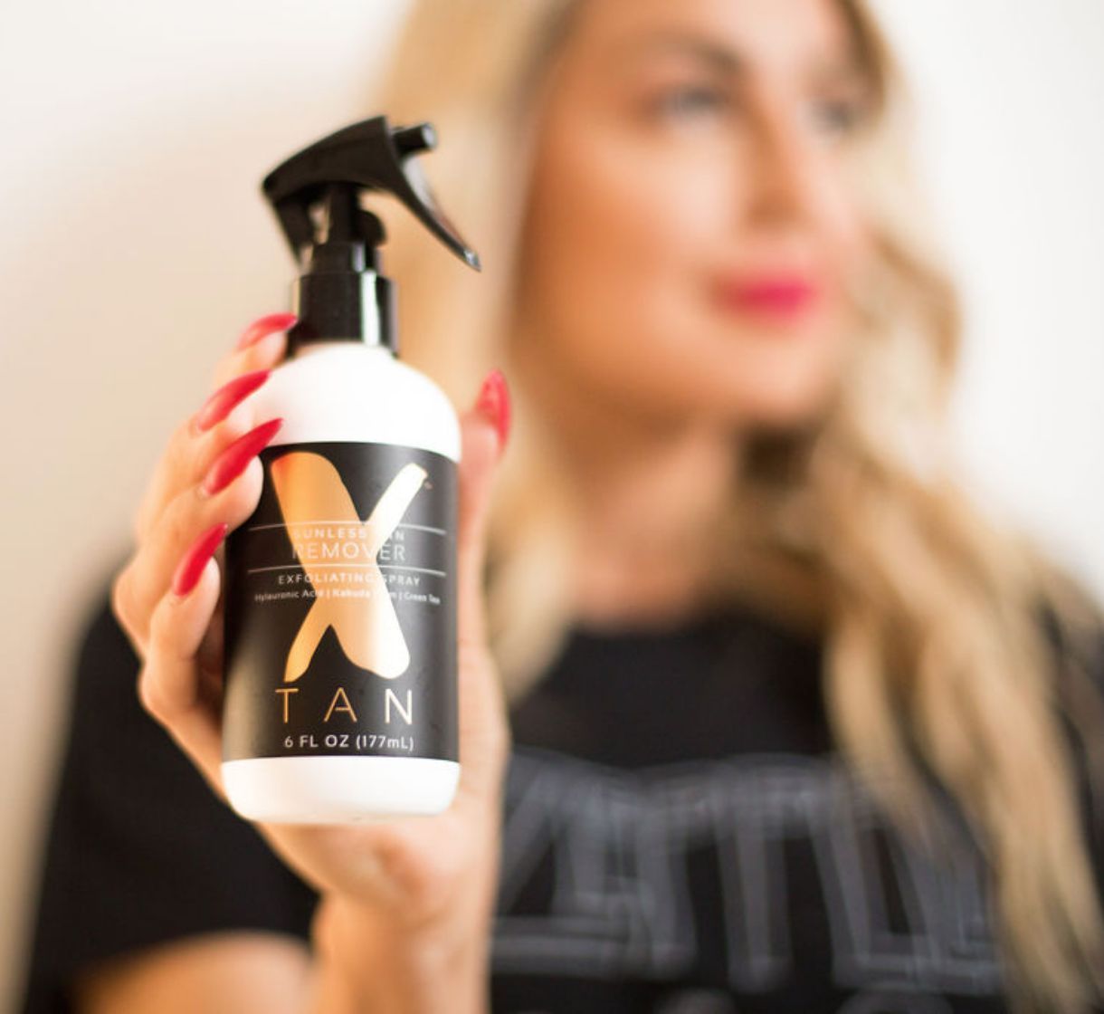 Directions: Spray onto your skin. Wait 2-4 minutes. Get your XTan Glove a little bit wet with water and gently buff skin to remove your tan!